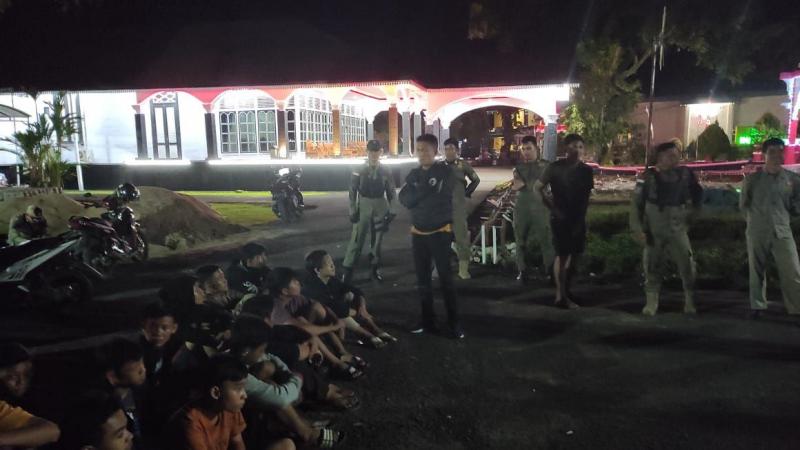 Satuan Polisi Pamong Praja (Satpol PP) Kapuas Hulu mengamankan 14 orang anak muda saat akan tawuran di Taman Alun Putussibau, Putussibau Utara, Kapuas Hulu, Kalimantan Barat, Sabtu (22/10/2022) malam. Petugas mendapati ada 5 anak yang minum miras sebelum terjadi perkelahian.